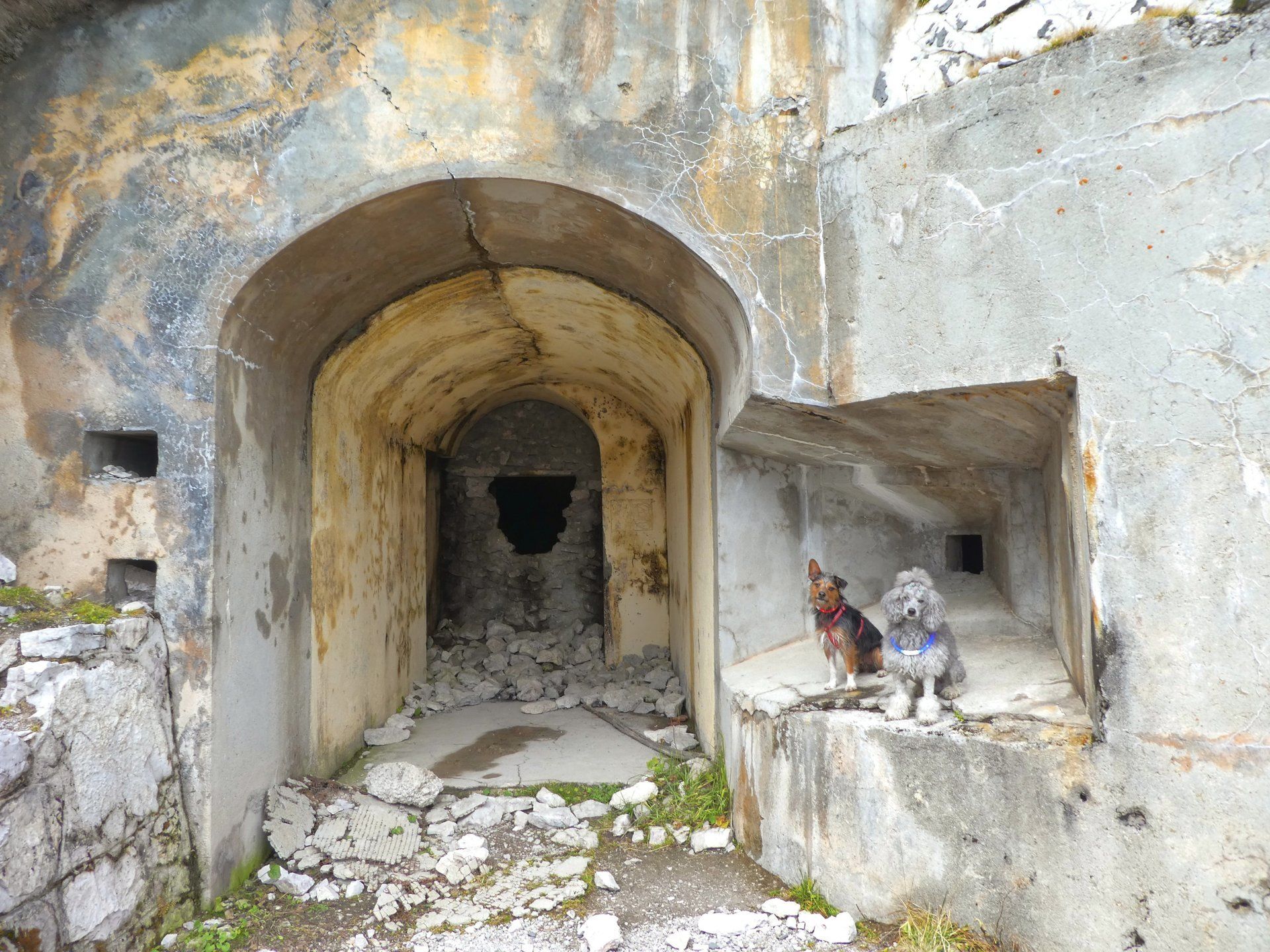 Auf dem Abstieg zurück zum Pass sind wir noch an einer weiteren Stellung vorbei gekommen die wirklich gut getarnt war. Auch diese war begehbar und von innen deutlich größer als es von außen den Anschein hatte.