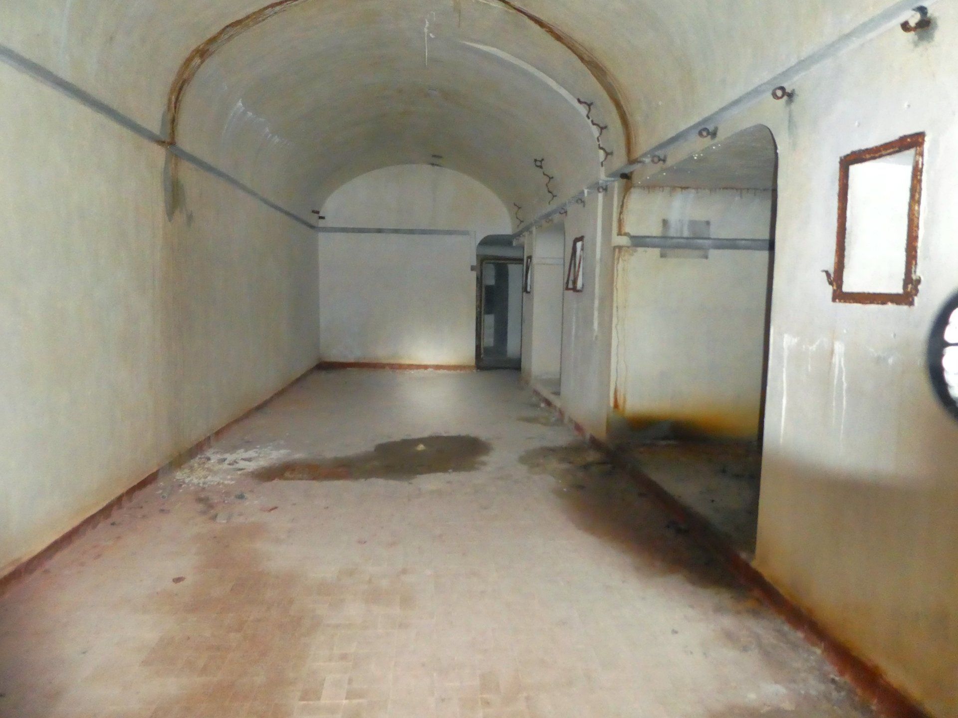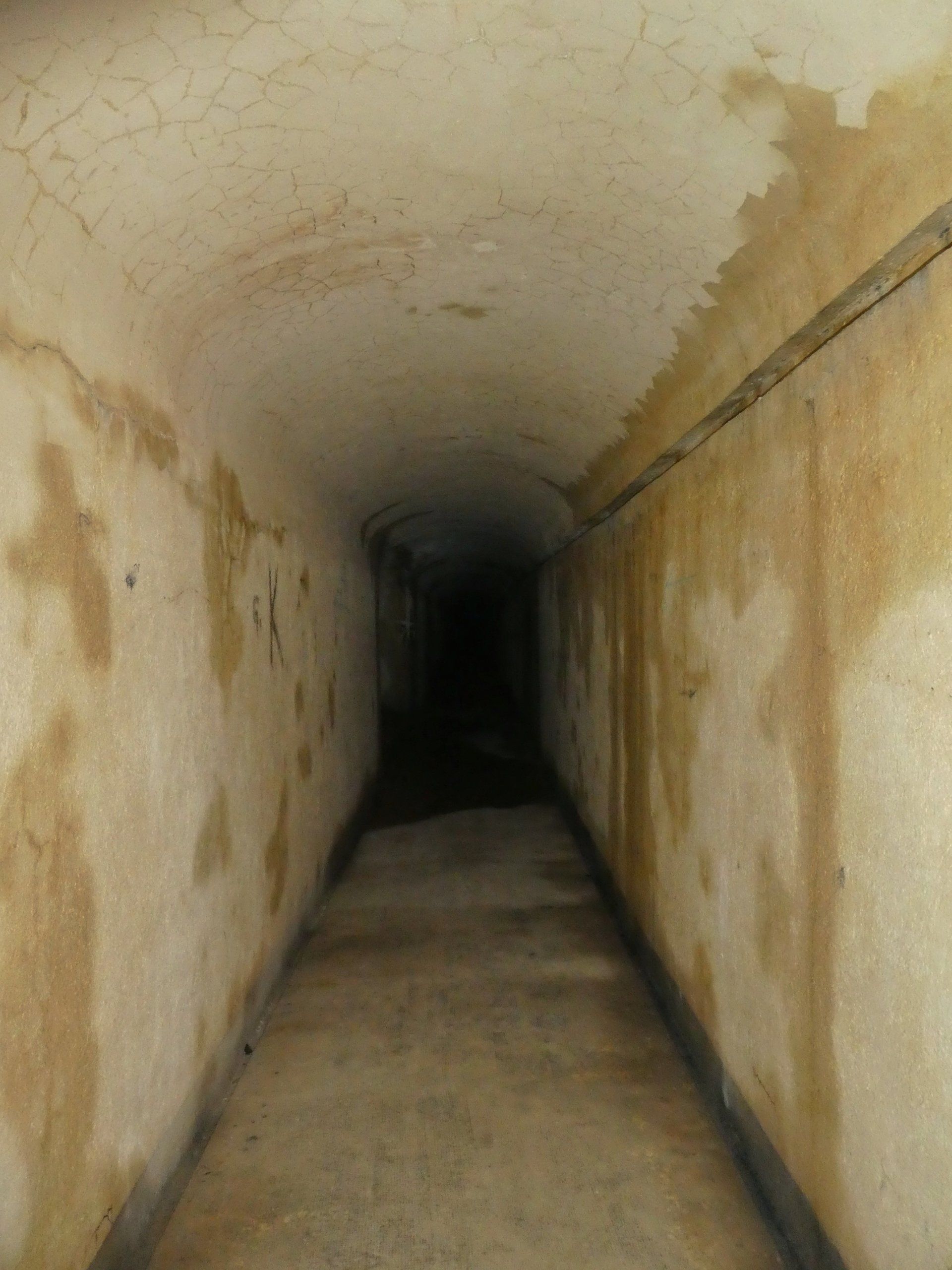 In der Festung war es wirklich Stock finster und kalt und verdammt gruselig! Ich habe mich nicht wirklich getraut vom Hauptgang abzubiegen, nur wenn man Tageslicht sah und so klar war, dass dort ein Schießstand ist bei dem man raus gucken konnte. Die Festung soll drei Stockwerke haben und mindestens 400 Meter lang sein. Allerdings hatte ich drinnen überhaupt kein Gefühl dafür wie weit ich gelaufen bin, eben weil es so dunkel ist. Dafür ist es drinnen erstaunlich sauber, als würde dort einmal die Woche jemand mit nem Besen durch gehen. Immer wieder zweigen Gänge mit schweren Stahltüren oder Treppen vom Hauptweg ab.