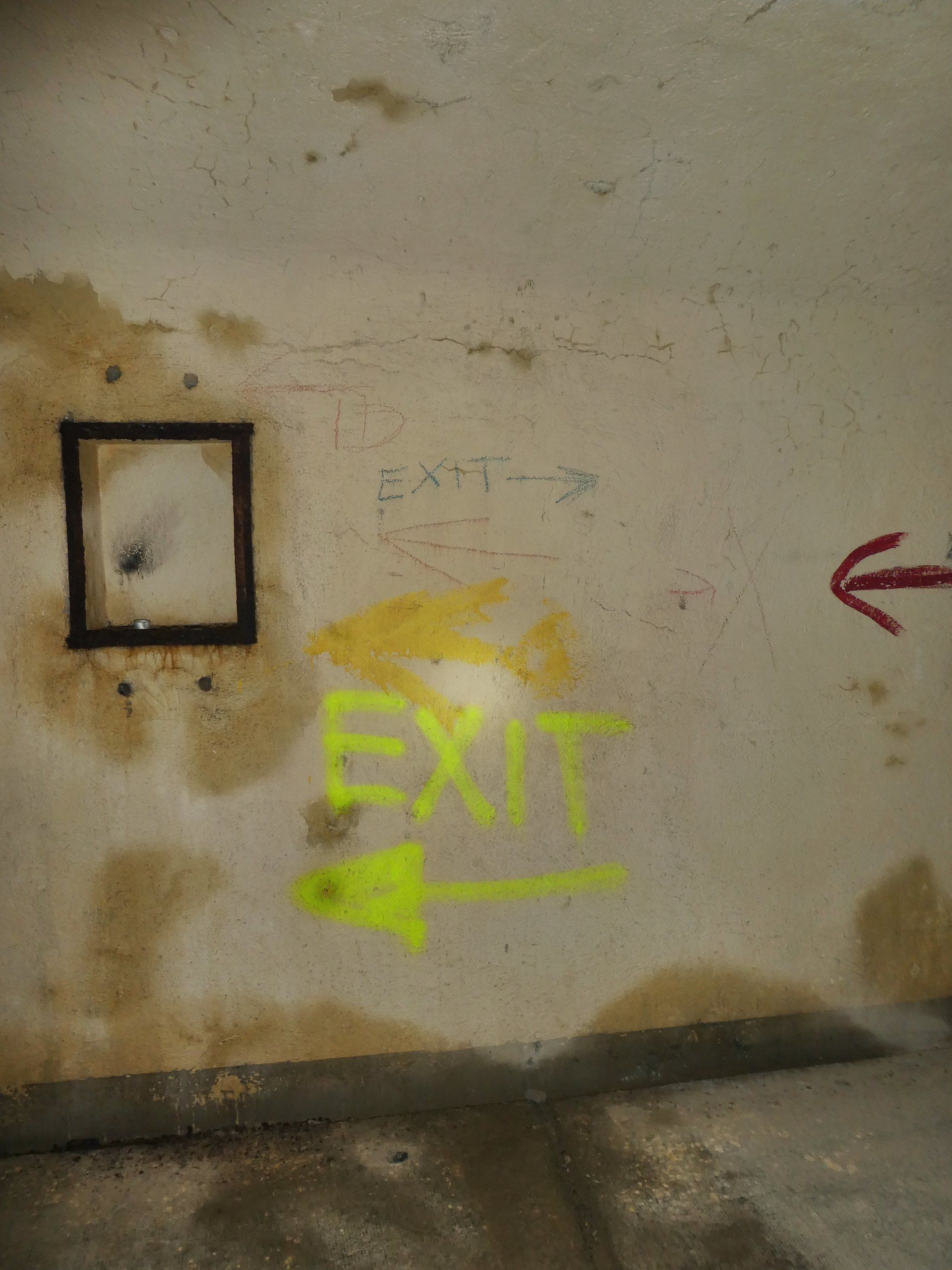 Hätte ich Kreide oder so dabei gehabt, hätte ich mich vielleicht mehr getraut, aber leider konnte man sich nicht an den bereits an den Wänden befindlichen Hinweisen orientieren.