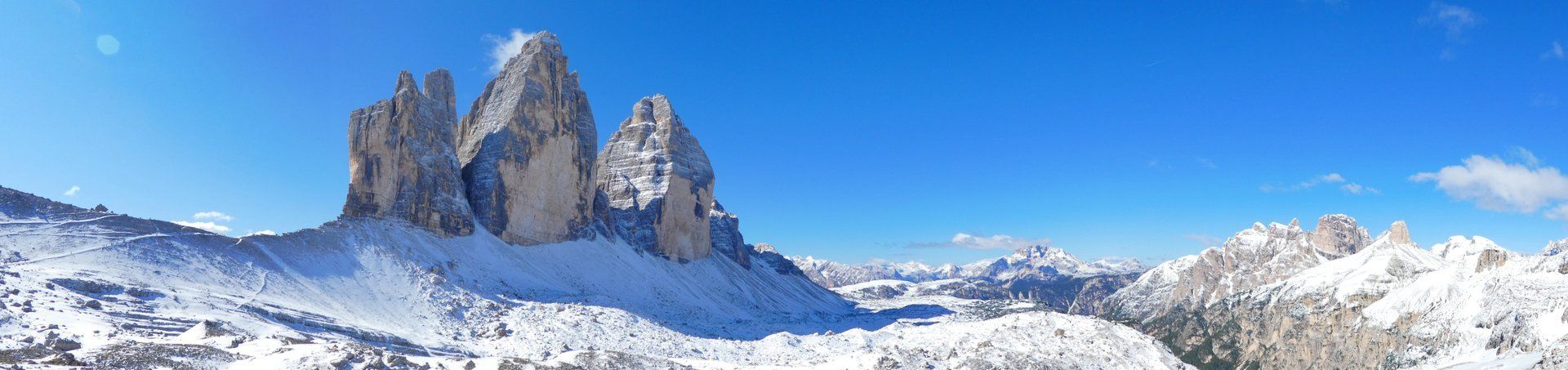 Jeder wollte ein Foto mit Blick auf die Nordwände, dem berühmten Blick auf die Zinnen. Durch den Schnee und das Eis war es nicht einfach und froh war, wer Schneeketten unter seinen Schuhen hatte. Aber um auf die Nordseite zu kommen, musste man eben erstmal herum laufen, so ergeben sich Blicke auf die drei Zinnen, bei denen wohl nur echte Kenner erkennen, welche Berge dort vor ihnen stehen.