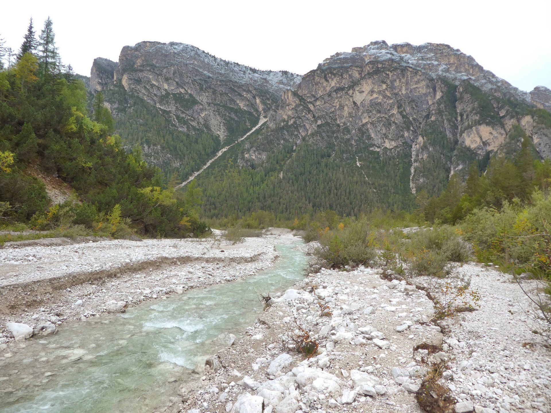 Ein wenig weiter des Weges war ein Nationalpark Gebäude, naja Gebäude ist eigentlich zu viel gesagt, dass ich abends gesehen hatte und so beschloss ich da eben vorbei zu gehen und zu schauen was man dort zu sehen bekommt. Zu sehen gab es den ersten Blick auf die berühmten drei Zinnen. Übrigens wohl die einzige Stelle an der man die Nordwände vom Tal aus sehen kann. Schnell ein Foto machen und dann beschließen noch ein paar Meter weiter zu gehen.