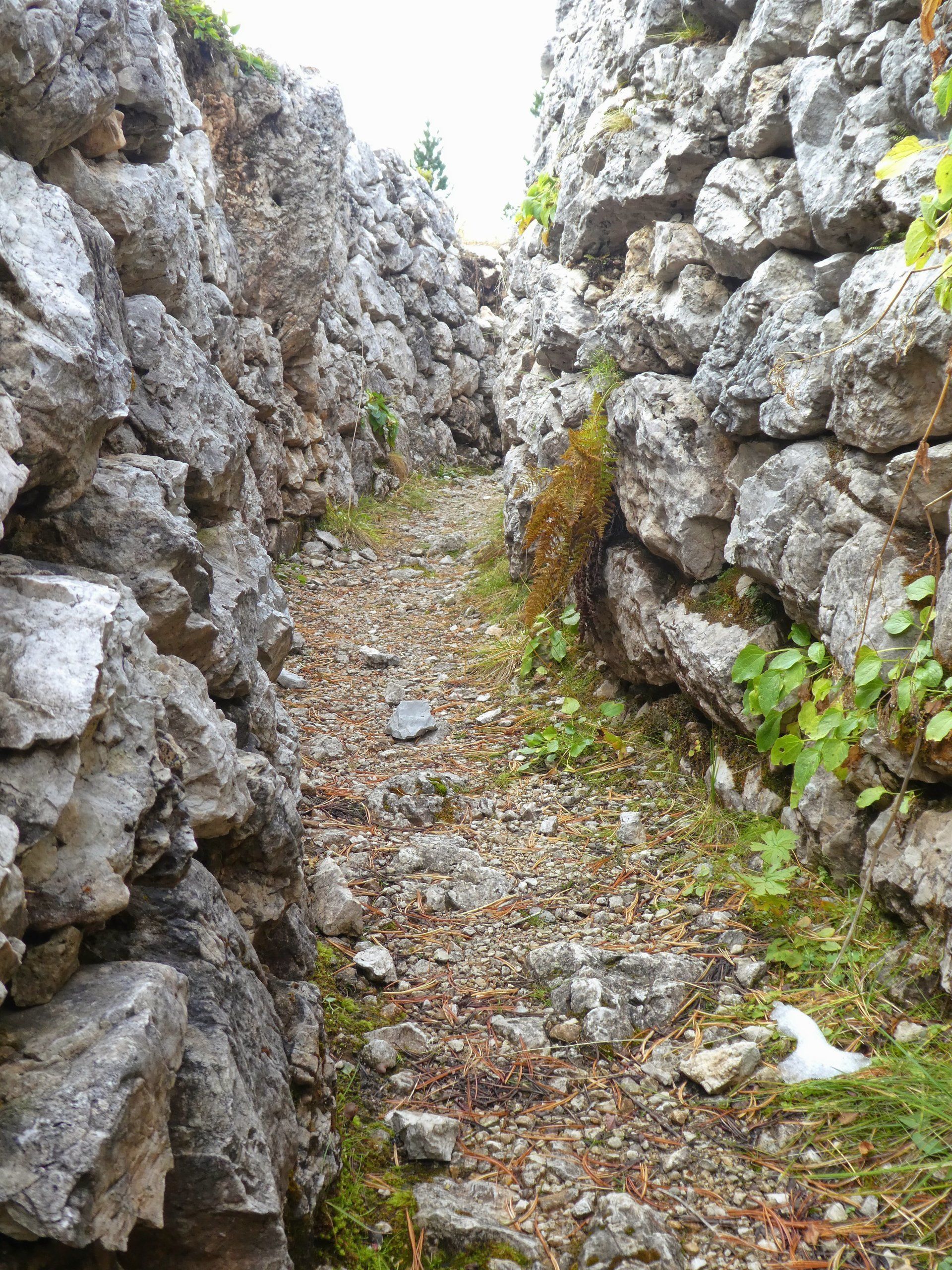 Weiter ging es Richtung Col di Lana, zunächst über eine seichte Wiese auf deren gegenüberliegenden Seite direkt wieder ein Eingang zu einer Gefächtsstellung war.