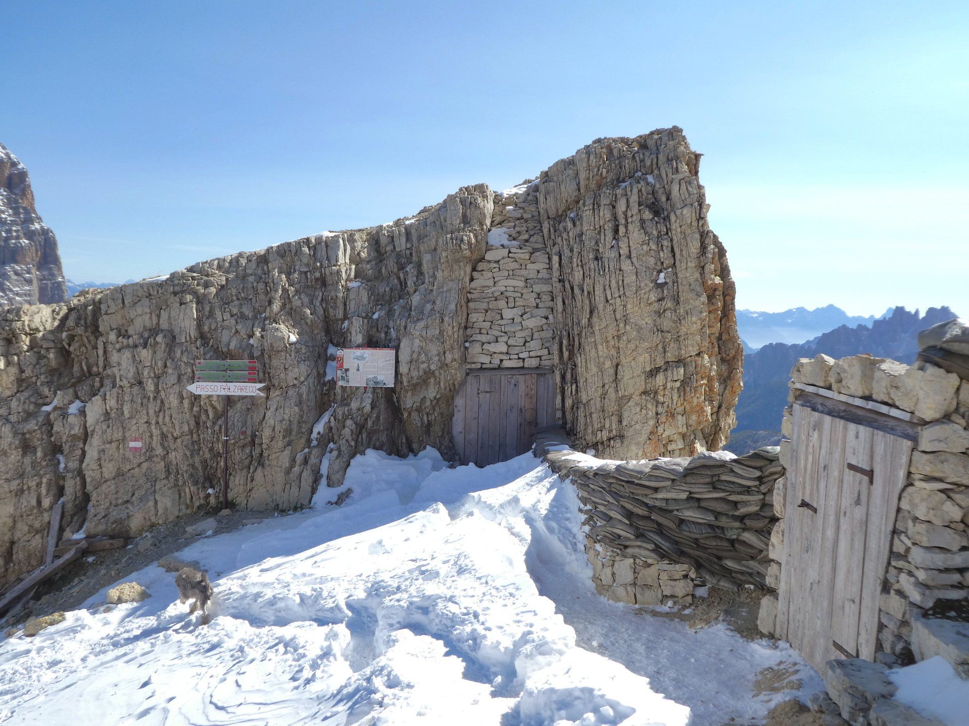 Das Gebiet rund um den kleinen Lagazuoi, im ersten Weltkrieg sehr hart umkämpfe Front zwischen den Italienern und den Österreichern. Diese Front verlieg quasi quer durch die Berge und mit durch meine ich durch! Sowohl die Italiner als auch die Österreicher haben die Berge mit ihren Stollen, Schießscharten und Unterkünften in sowas wie Schweizer Käse verwandelt. Man muss nur ein wenig die Augen offen halten und sieht die Spuren, heute 100 Jahre später, immer noch überall.