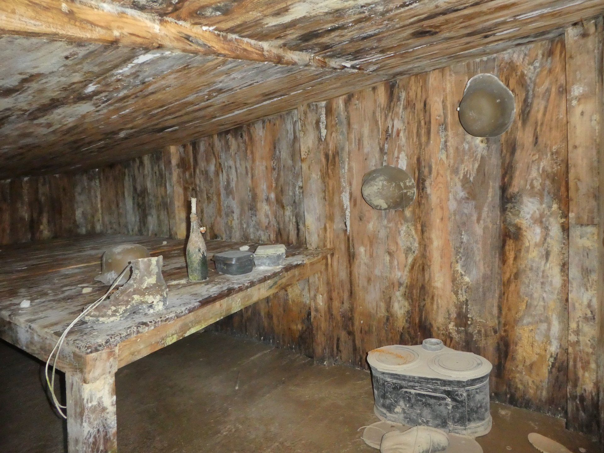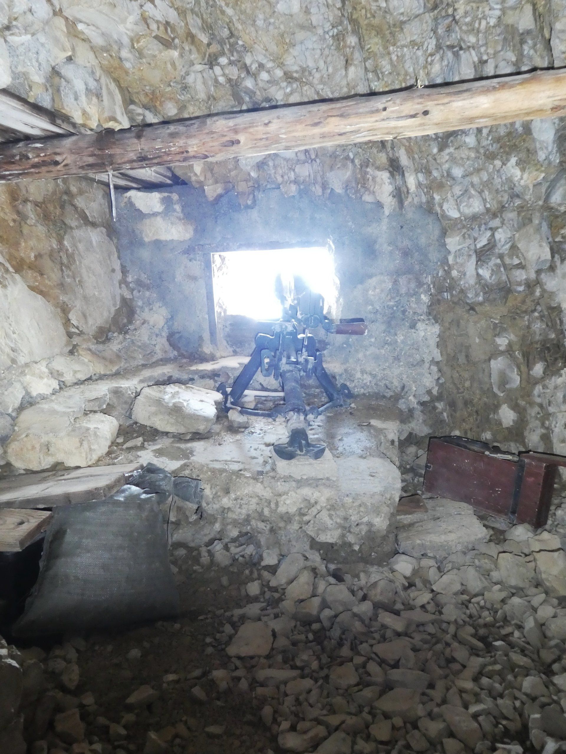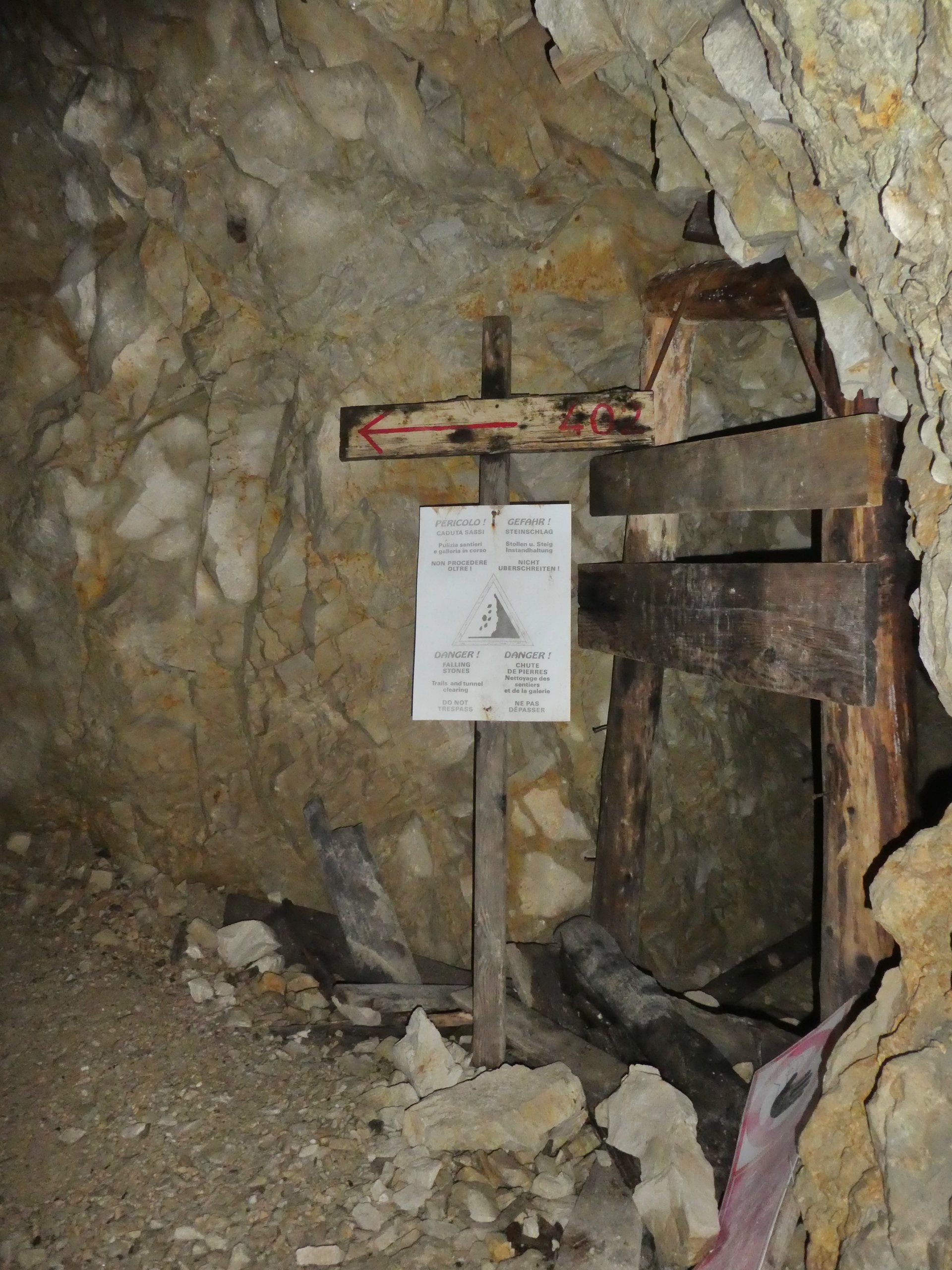 Wie eingangs erwähnt ist gefühlt der ganze Berg mit Gängen durchzogen, diese sind zu teilweise mit Austellungstafeln und Tonbändern zu einer Art Museum hergerichtet. Leider war der Eingang zu diesem Tunnelsystem nur über einen Stieg zu erreichen, der mir in meinen Schuhen, ohne Sicherung, bei Schnee und vor allem mit den Hunden dann doch zu Abenteuerlich war. So bin ich also nicht durchs Tunnelsystem abgestiegen sondern auf dem Alternativweg. Schade!